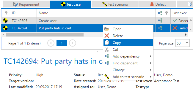 You can add test cases to a test scenario using your clipboard. To do so, create a new test scenario. Select a test case from the grid and copy it to the clipboard.