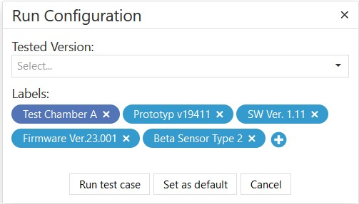 New labels can be added in the run configuration before the execution or in the execution himself. To add a new label klick on the