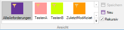 Innerhalb der Navigation ist es möglich, verschiedene Sortierungen und Gruppen zu erstellen. Diese können in Ansichten gespeichert werden, um zwischen ihnen zu wechseln. Dafür benutzen Sie den Neu Button.