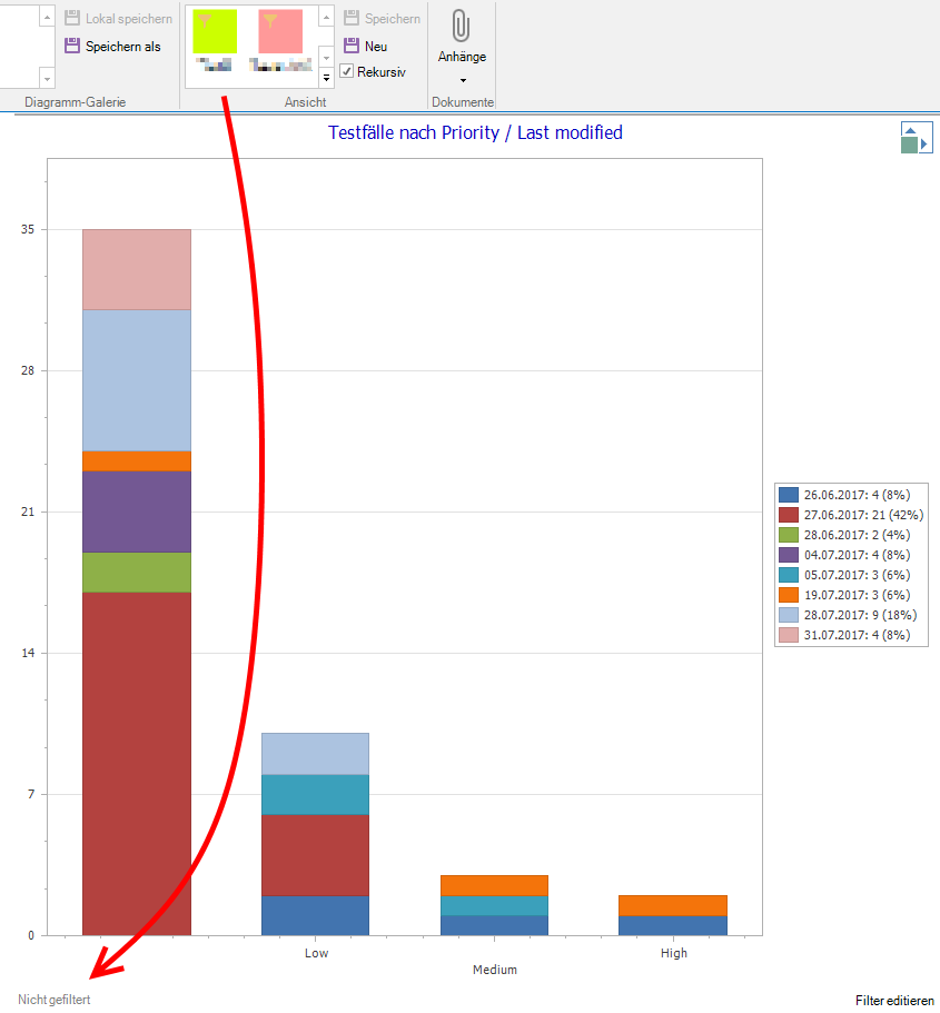 3. Schritt: Kombinieren Sie das Diagramm mit einem Filter. Klicken Sie auf einen Filter in Ansichten oder editieren den Filter im Dashboard.