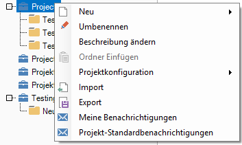 Machen Sie einen Rechtsklick auf ein Projekt und definieren Sie Projekt Standardbenachrichtigungen für alle Benutzer oder definieren Sie Meine Benachrichtigungen, um die Projekt-Standard-Einstellungen zu überschreiben.