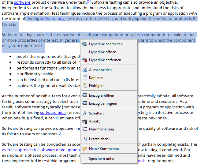 In diesem Beispiel wurde die Einführung in das Thema Softwaretest von wikipedia.org kopiert.