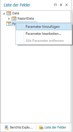 Nachdem Sie einen Rechtsklick auf Parameter gemacht haben, können Sie einen neuen Parameter hinzufügen. Im nächsten Fenster können Sie solch einen Parameter mit den folgenden Werten spezifizieren: