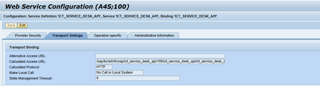 9. Geben Sie die Endpunkt-URL der ICT_SERVICE_DESK API ein. Diese finden Sie im SOAMANAGER. Sie müssen den Servernamen und den Port vor die Zugriffs-URL schreiben, welche im SOAMANAGER steht. Beispiel-URL: http://sap.andagon.com:8000/sap/bc/srt/rfc/sap/ict_service_desk_api/100/ict_service_desk_api/ict_service_desk_api
