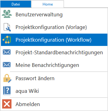 In aqua können Sie einen Workflow für ein bestimmtes Projekt erstellen. Um den Workflow eines Status zu konfigurieren, öffnen Sie die Projektkonfiguration (Workflow).