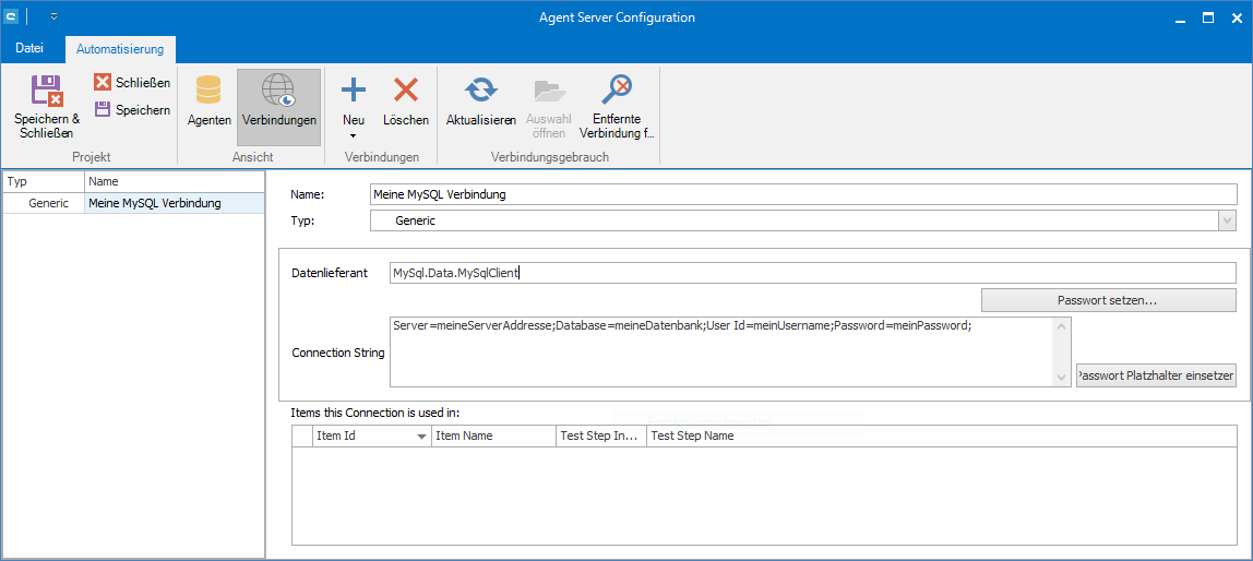 6. Passen Sie den Connection String passen zu Ihrem MySQL Setup an