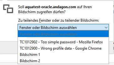 Abhängig vom verwendeten Browser, kommt als erstes eine Meldung welchen Bildschirm, Fenster oder Applikation Sie aufnehmen möchten.