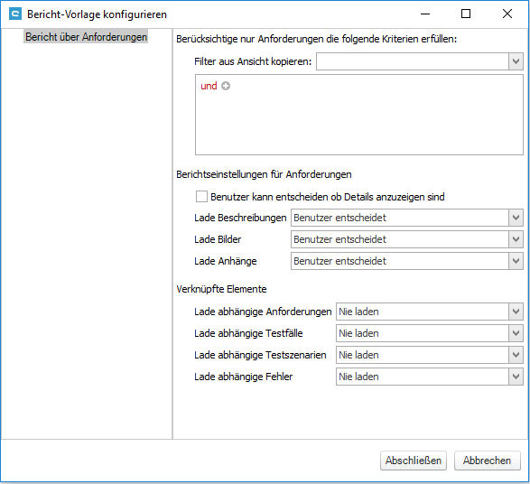 Nun fügen Sie Anforderungen in Ihren Bericht ein, um ein Inhaltsverzeichnis für Anforderungen zu definieren. Sie erhalten das folgende Ergebnis:
