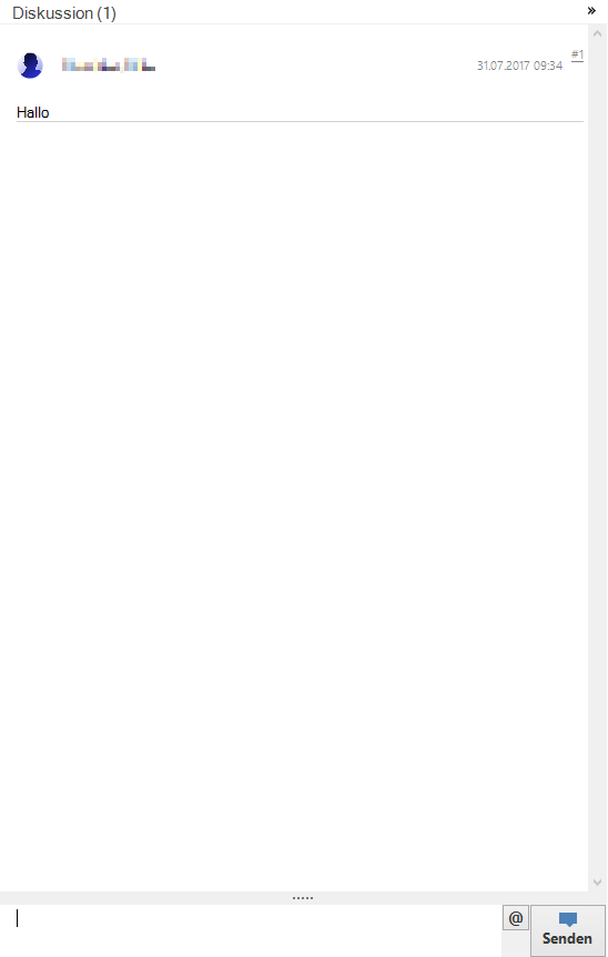Alle anderen Benutzer können die Nachricht sehen. Es spielt keine Rolle, ob das Element im gesperrten oder freigegebenen Modus ist. Außerdem haben Sie die Möglichkeit, aqua Benutzer zur Diskussion einzuladen. Um dies zu tun, drücken Sie @ oder klicken Sie auf den @ Button und geben Sie den Vor- und Nachnamen ein. Wählen Sie den Benutzernamen aus und drücken Enter, um zu bestätigen.