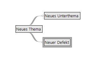 Mind Maps können Ihre Ideen darstellen. Klicken Sie auf ein Thema und klicken dann auf den Button Neues Unterthema. Dies erstellt ein neues Unterthema. Außerdem ist es möglich, aqua Elemente über Drag&Drop in eine Mind Map zu ziehen.