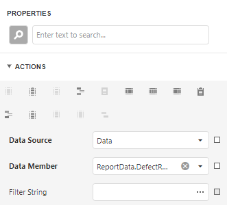 Zurück im Report Designer filtern wir unser Band "ReportData.TestScenarioReport.TestScenarios.Execution", indem wir die Eigenschaften auswählen und auf die drei Punkte neben dem Filter klicken.