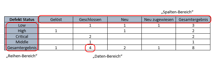 Ein "Column-Area"-Feld, welches auf Status konfiguriert ist, zeigt alle Status als Spalten an