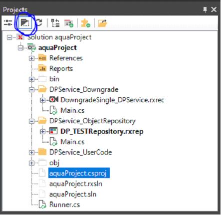 11. Das Projekt in Ranorex kompilieren, Ranorex schließen und den Testfall in aqua speichern.