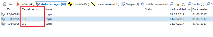 Die Spalte Version stellt Informationen über die Version des Elements bereit. Die Elemente können gelistet, gruppiert oder nach Version sortiert werden. Sie können ebenso Filter für eine individuelle Ansicht der Elemente erstellen.