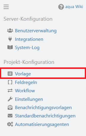 . Dort wählen Sie im Bereich Projektkonfiguration den Eintrag Vorlage aus.