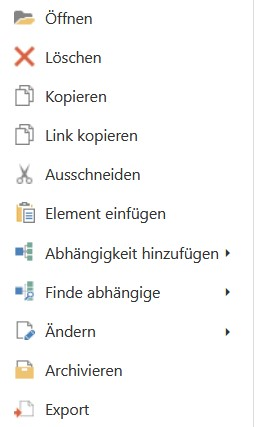 Per Rechtsklick auf ein angezeigtes Element lässt sich das Kontextmenü für eine schnelle Bearbeitung des Elements einblenden. Über das Kontextmenü können Sie (für ein oder mehrere Elemente):