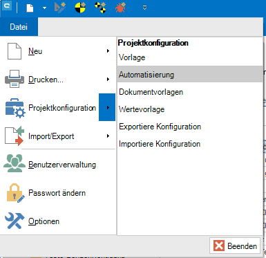 Dafür klicken Sie in aqua auf Datei und wählen -> Projektkonfiguration -> Automatisierung.
