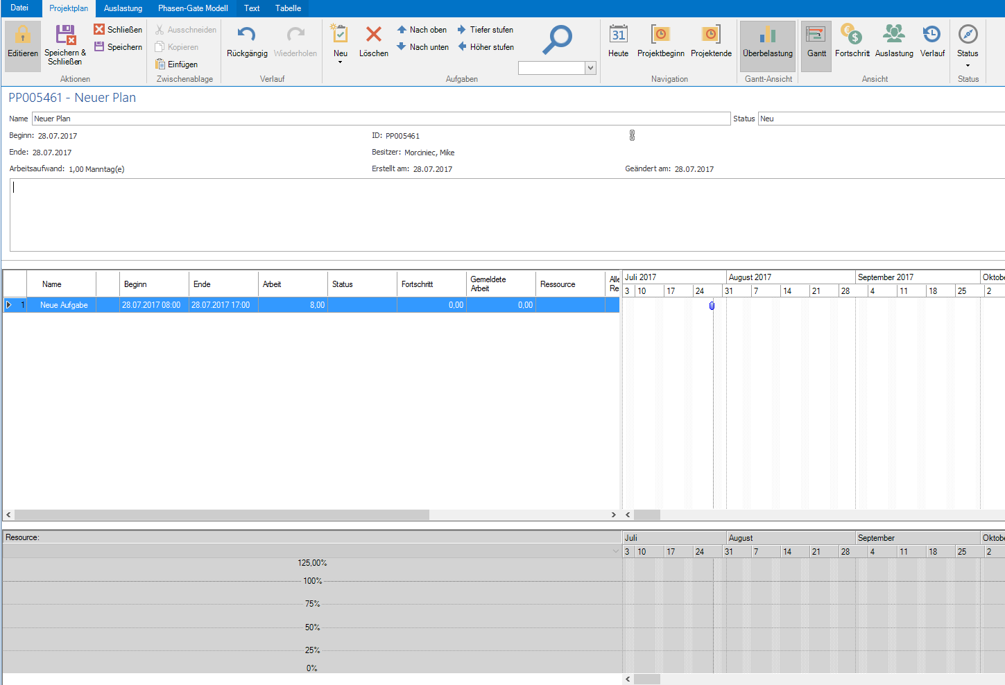 Hinzufügen und Synchronisieren von Elementen zum Projektplan (Rich Client)
