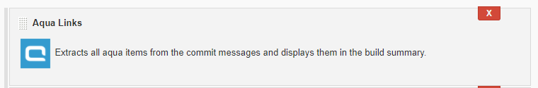 Das Jenkins Plugin kann commit-Nachrichten von Subversion oder Git analysieren. Wenn der Kommentar einen Link zu einem Element in aqua enthält, wird dieser geparst und in Jenkins angezeigt.