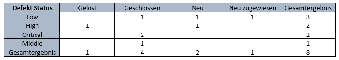 Ein "Column-Area"-Feld, welches auf Status konfiguriert ist, zeigt alle Status als Spalten an