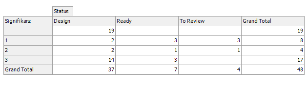 Ein Feld "Zeilenbereich", das auf Signifikanz konfiguriert ist, zeigt alle Signifikanzen des Elements als Zeilen an.