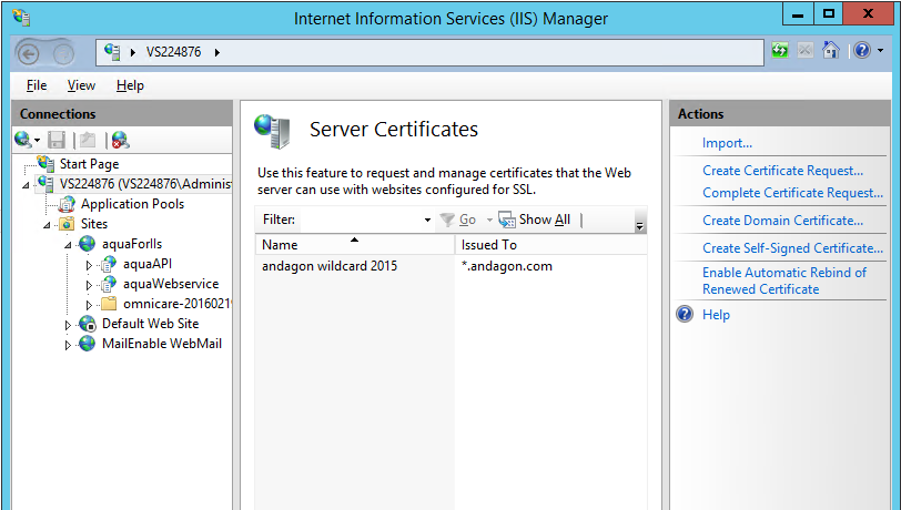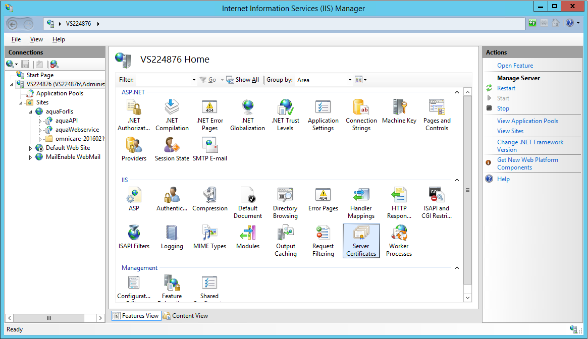 4. Wählen Sie "Server Zertifikate" in dem mittleren Fenster aus