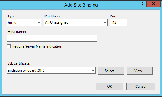 8. Fügen Sie ein neues Binding hinzu, wählen Sie den Typ "https" und wählen Sie das zuvor importierte SSL-Zertifikat
