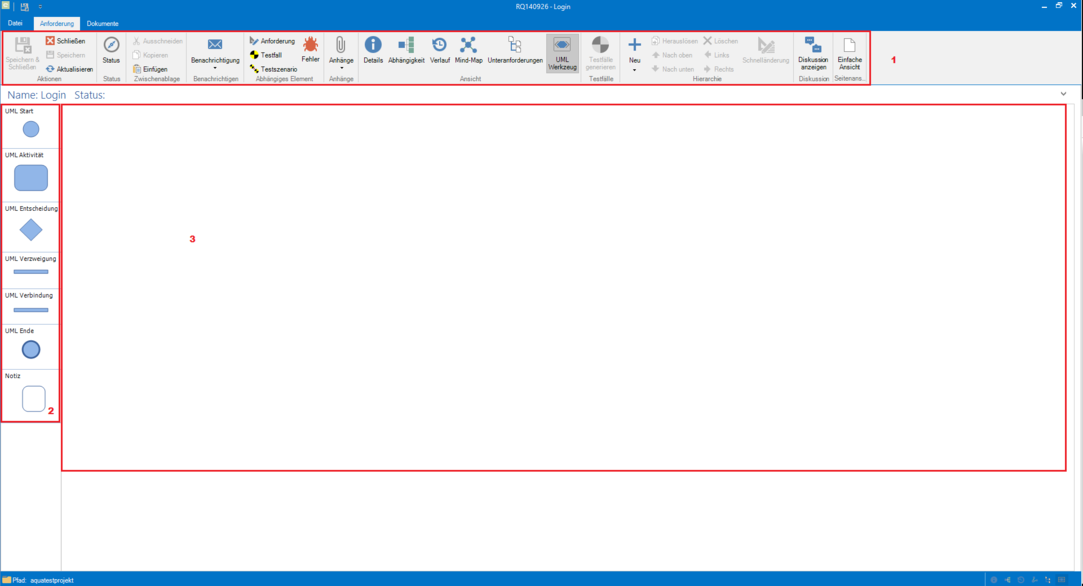 Um ein UML-Diagramm in aqua zu erstellen, klicken Sie auf das UML Werkzeug in dem Panel Ansicht in der Ribbon Bar.