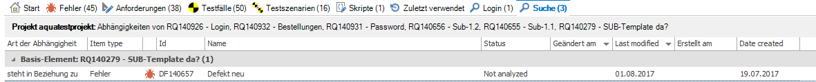 Als Vereinfachung bietet aqua die Möglichkeit an, die neue Version eines Testfalls in einem Testszenario einzubinden, indem man auf den Verwandte hinzufügen Button klickt.