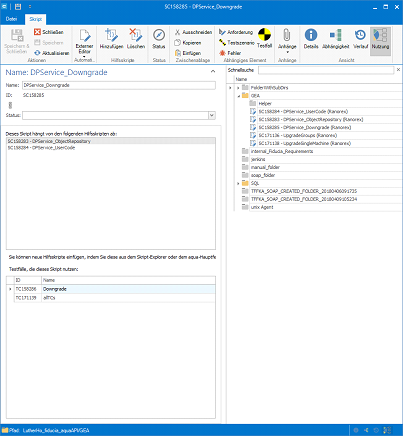 2. Beziehungen bzw. Abhängigkeiten zwischen den Skripten erstellen (Ansicht: Nutzung). Dies ist insbesondere sinnvoll, um das Repository und User-Code-Module wiederzuverwenden.