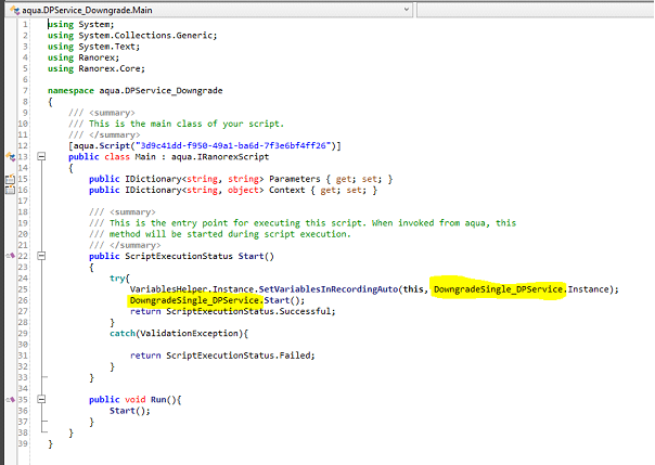 10. In den Main.cs-Dateien müssen dann noch folgende zwei Zeilen so angepasst werden, dass das richtige Recording statt des MainRecordings aufgerufen wird (gelb markiert).