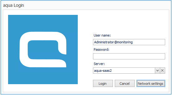 1. Melden Sie sich auf Ihrem aqua Server an