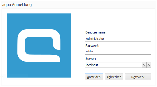 Nun können Sie Ihren aqua Client installieren, indem Sie aqua.msi installieren und den Client starten. Die Standard-Anmeldedaten sind folgende: