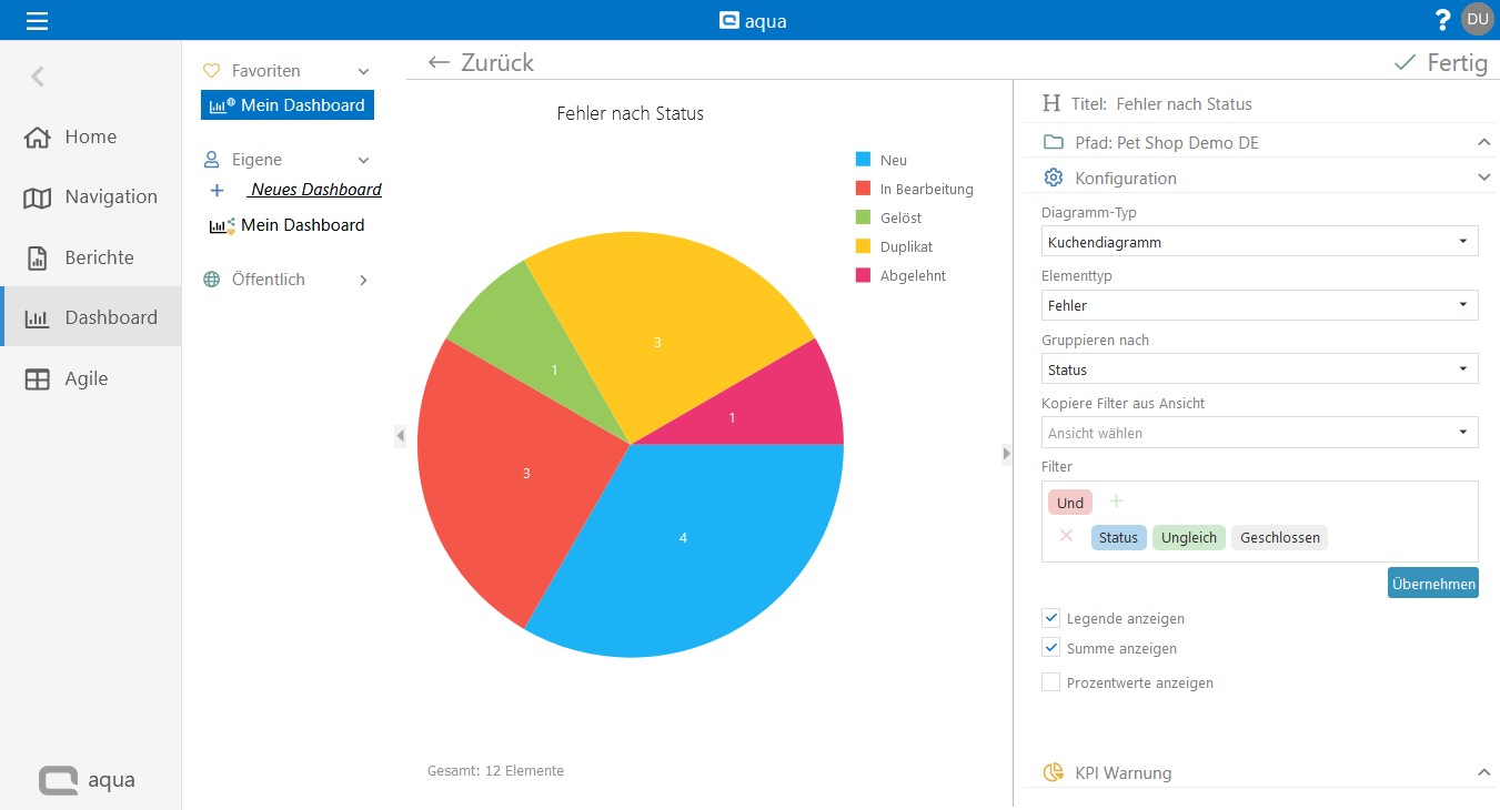 Über den Button Zurück kommen Sie wieder zu der Gesamtansicht des Dashboards. Sie können aber auch noch über KPI Warnung die Farben des Dashboards anpassen.