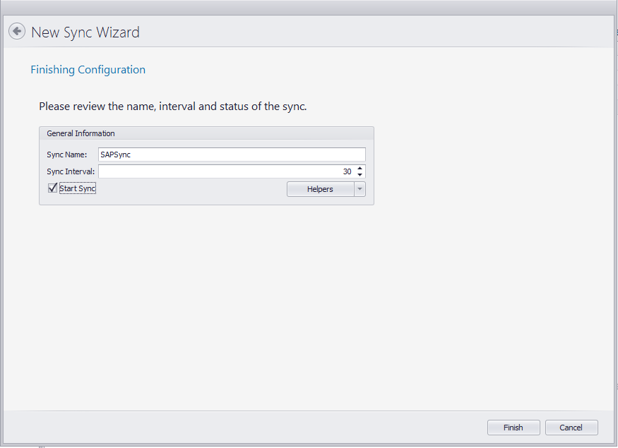 Optionally, you can now use the 'Helpers' button to fetch the field values for dropdown fields from SAP and copy them to the aqua project template