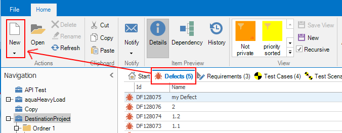 You can create a new defect without any dependency of a test case or requirement. Within the module Navigation, click on Defects in the menu bar and click on New to create a new defect.