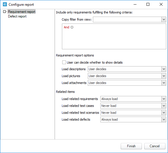 In order to improve performance of report creation it is important to understand the difference between server-side filtering and report-side filtering. Server-side filtering is done when a user starts to generate a report. The window below shows where a user can set filters ([Assigned to] equals Me). This is done on the server before data is send to the client (or the report respectively). It allows you to decrease the amount of data sent to the report.