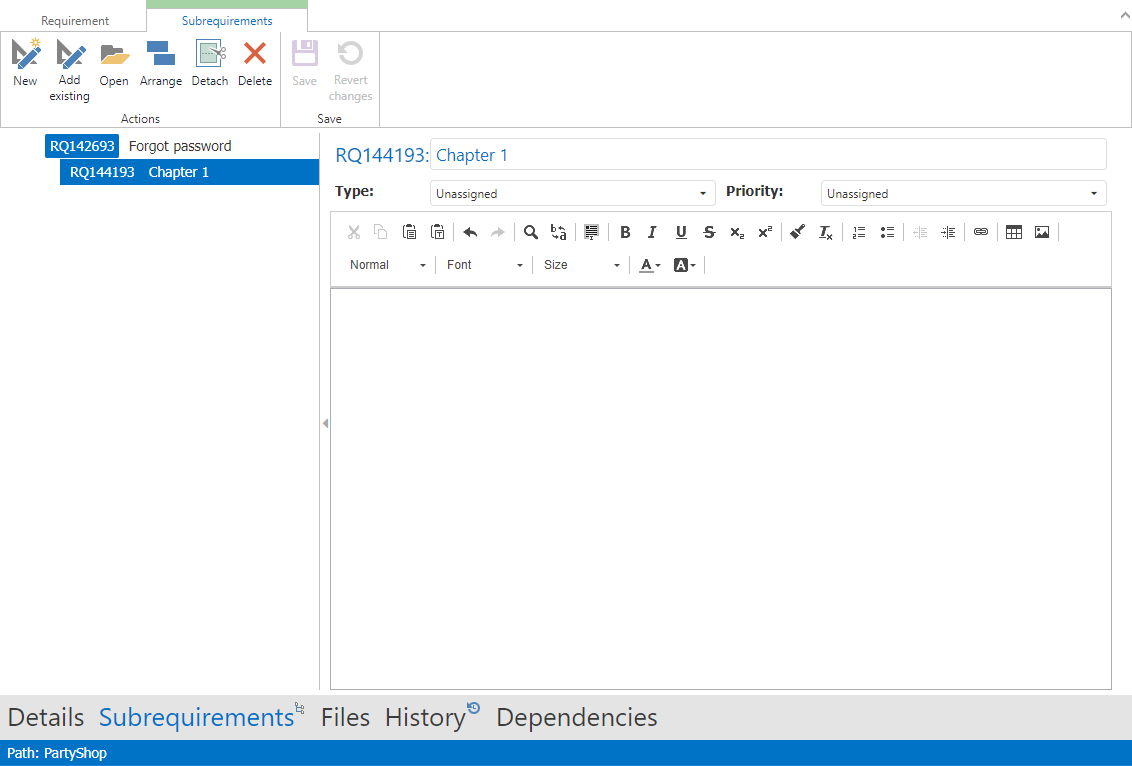 Start by opening a single requirement and click on Subrequirements in the navigation bar.