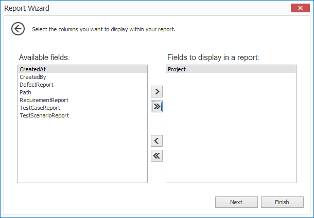 In this demonstration we will only create a Data-bound Report as it is the report wizard’s most commonly used feature . To begin with, we choose the project field to group the report by.