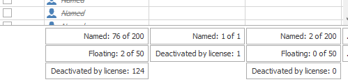 On the bottom of the screen you can see a summary of already assigned licenses and available licenses. Deactivated by license means that some time ago, there was no valid license available for some reason. The users are reactivated automatically on login if enough licenses are available.