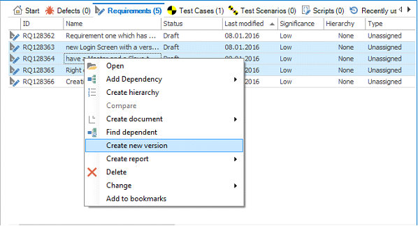 aqua offers the user the option to manage versions of all elements such as requirements, defects, test cases and test scenarios. This allows you to store auditable requirements, test cases and defects. It enables you to work with different versions of elements and to restore old document status of individual elements. Changes can be easily tracked by the software cycle and are displayed visually. New or alternative versions of elements can be managed.