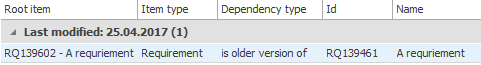 The dependencies of the individual elements can also be viewed within the context menu or the dependencies button. It displays which element is the newer, the older, or an alternative version.