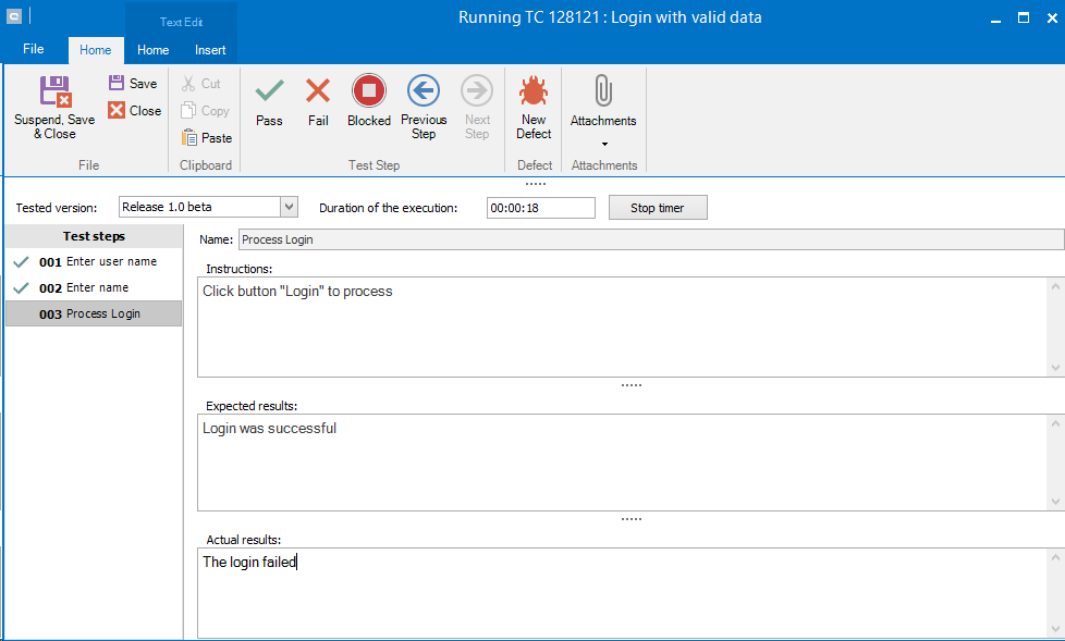 While executing a manual test case, you have the option to create a new defect by clicking on New Defect.