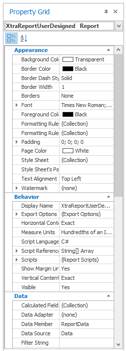 Every element in an aqua report has a set of properties that determine its appearance and the actions taken when the element fires an event. An event fired by an element can be “Before Print”, “After Print”, “Size Changed”, or “Text Changed”, for example. You can define a script function to be executed when such an event is fired. For example on a “Before Print” event you can change the text of the label which is useful when a label is printed within an iterating band.