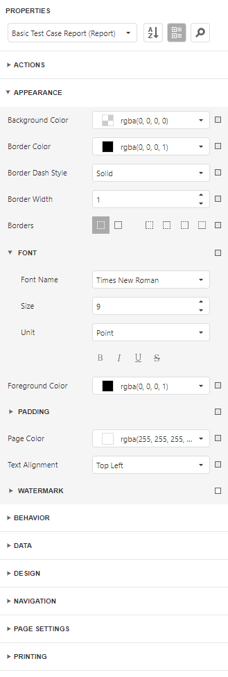Changing the appearance of an element is straightforward. For example, the background color can be set in the Appearance menu by the Background Color parameter, or the font size can be changed by the Size parameter within the Appearance – Font menu.