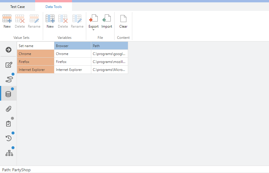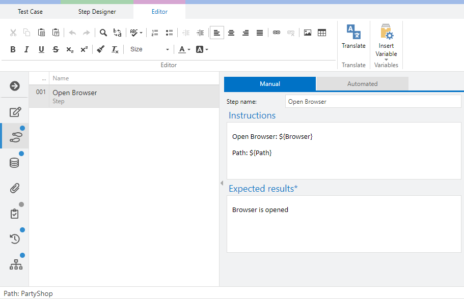 As an example, let us create a scenario in which a browser is opened in a first step, an url is entered as a second test step, and the browser is closed as third test step.