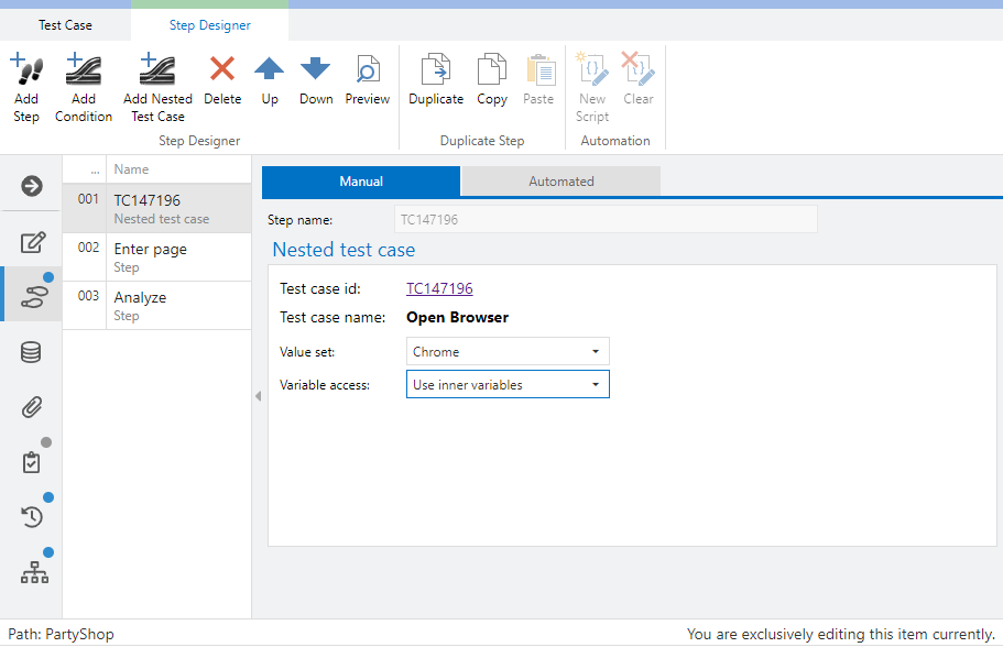 This topic is important for testers who want to reuse test cases/test steps. A simple scenario might be that you want to reuse test steps for a login in various test cases so that those tests steps only have to be updated once in case of changes.