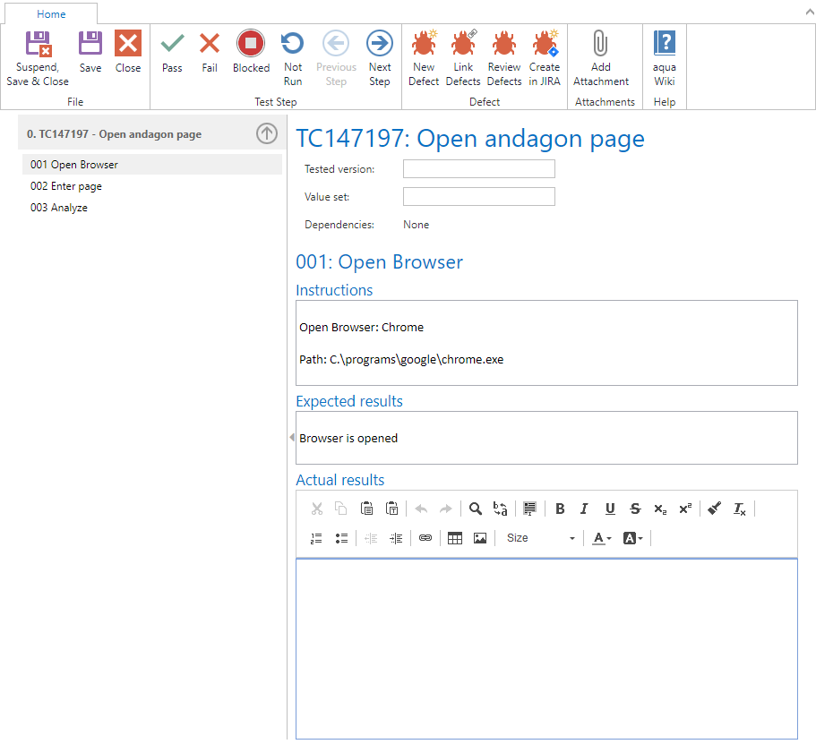 By executing the test case, the parameters and test steps are resolved automatically.