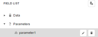 Select 'Parameters' from the field list and click on . A parameter will be added. Click on the little pencil next to the parameter's name to edit the parameter.