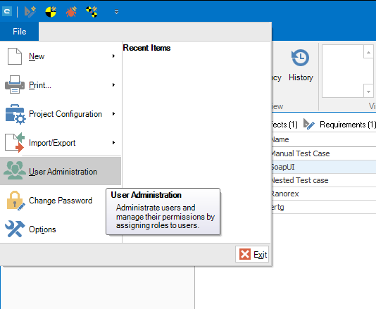 To allow users to access and work with a project you need to assign them to the project as project members. Launch the user administration by clicking File and choose User Administration from the menu. Please note that you need the appropriate rights.